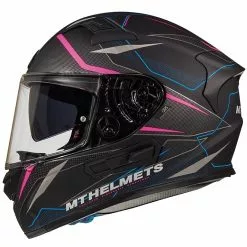 MT Helmets Casque Moto Intégral MT Casques KRE SV Double Visor Fibre Intrepid C3 Noir Rose Fluo Mat