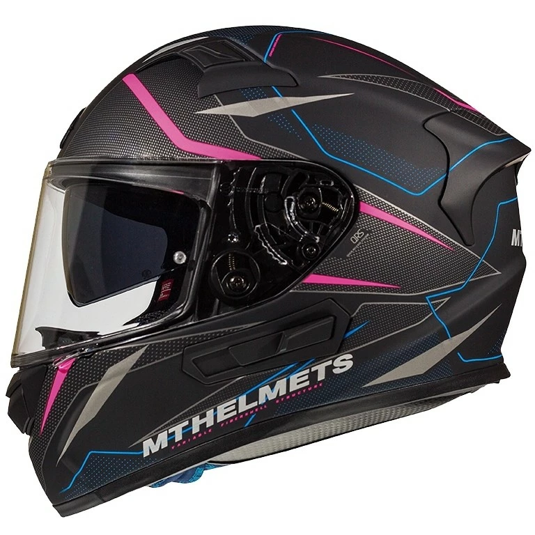 Casque moto intégral MT Casques KRE SV Double Visor Fibre Intrepid C3 Noir Rose Fluo Mat